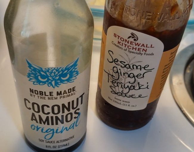 Rice Ramen Noodles with baby corn, bamboo shoots, water chestnuts, and bean sprouts. The sauce is sesame ginger teriyaki and a bit of coconut aminos. Didn’t realize lunch was going to be monochromatic.